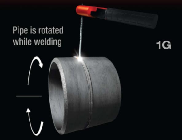 1G or 1-GR "Rolled" Welding on top pipe horizontal